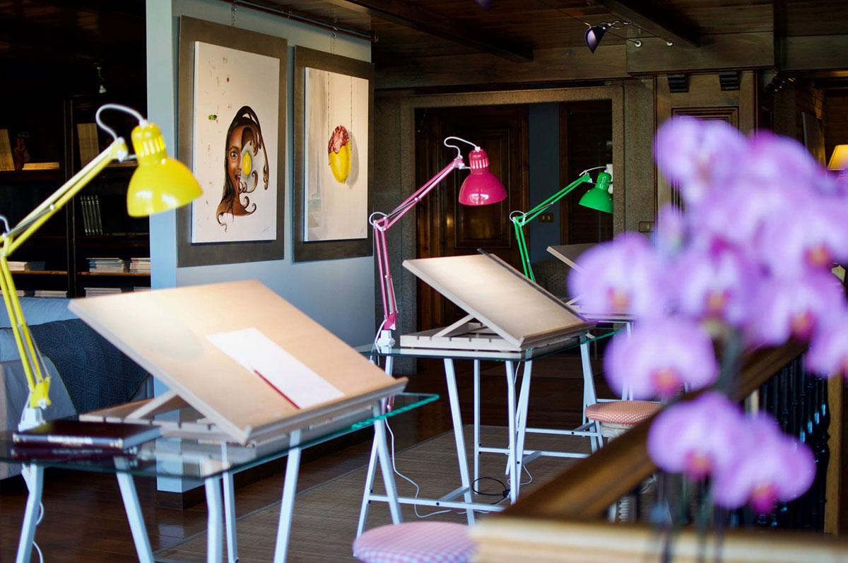 En la Escuela, los alumnos mantienen un estrecho contacto con la artista y el entorno, adquiriendo conocimiento y sensibilidad transmitida por una persona con unas dotes didácticas que hacen la delicia de sus alumnos.